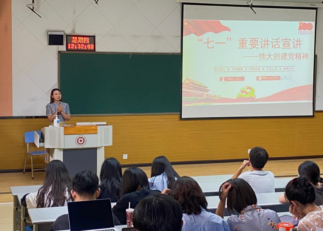 2021年9月16日,AB平台党委副书记彭华在乐学楼为法学院各年级本科生、研究生代表作题为“伟大的建党精神”的AB(中国)一站式服务平台总书记“七一”重要讲话精神宣讲。