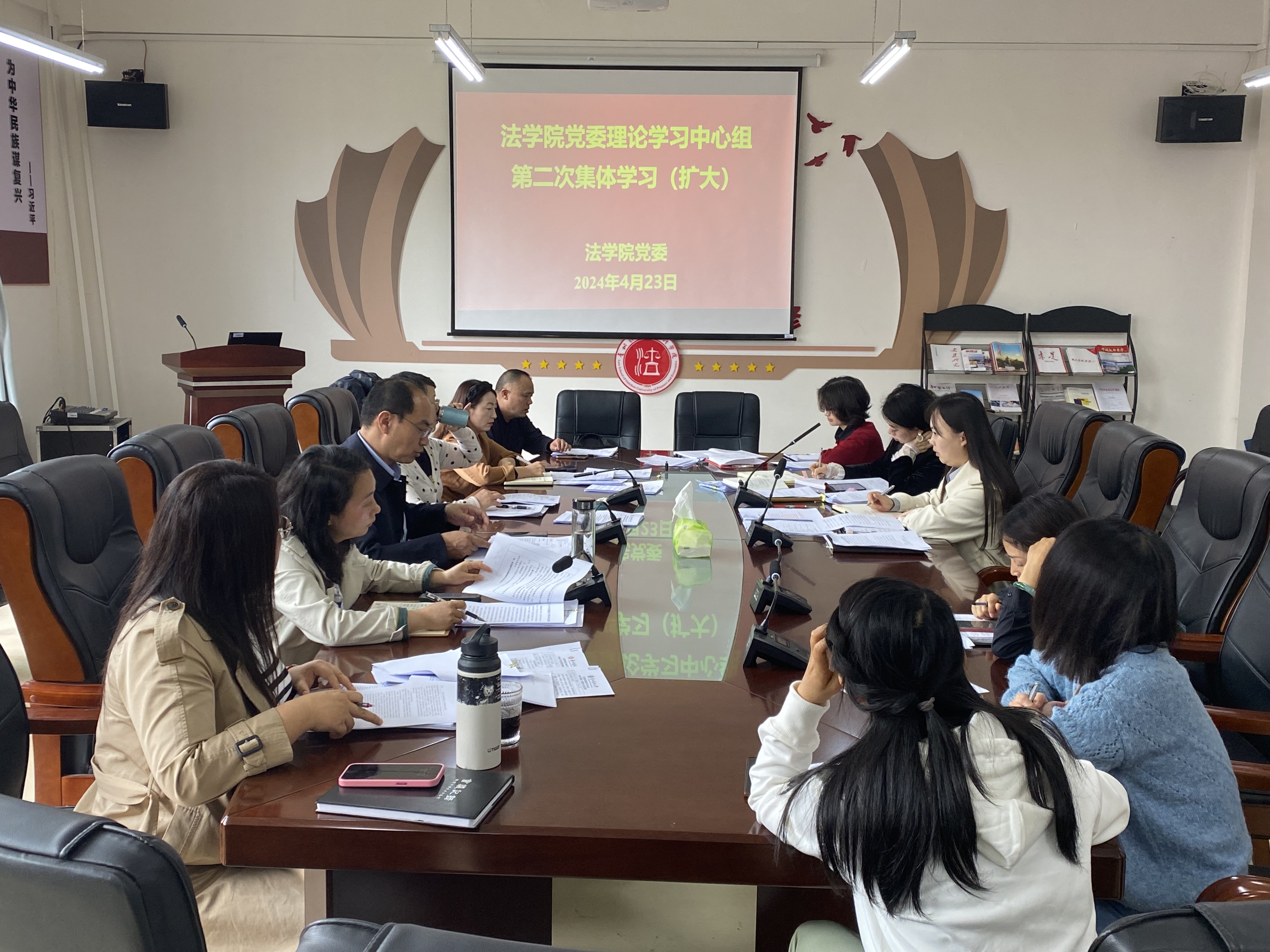 (法学院 莫丹洵 报道|摄影 )4月23日,法学院党委理论学习中心组举行2024年度第二次集体学习(扩大)研讨会。学院领导、科级干部及党支部书记参加会议,院党委书记邵新顺主持会议。