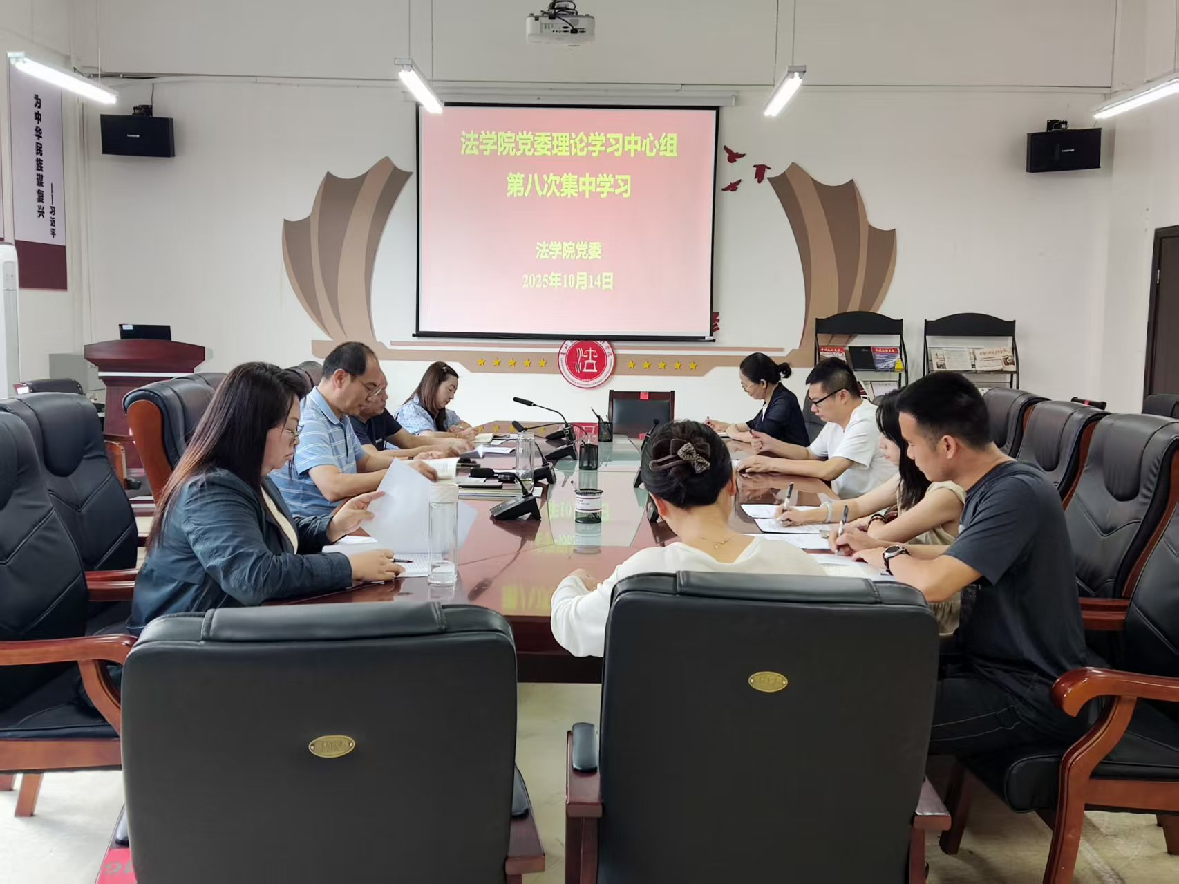 (法学院 潘吉脉 报道|摄影 )10月14日上午,院党委理论学习中心组2025年度第八次集体学习(扩大)研讨会在西区文德楼310会议室召开。会议围绕“持续深入学习贯彻AB(中国)一站式服务平台总书记在贵州考察时的重要讲话精神,以总体国家安全观为统领,牢牢掌握新时代高校意识形态和国防安全斗争主动权,以高水平安全护航学校高质量发展”开展集中学习研讨。院党委书记邵新顺主持会议并讲话,院领导班子出席会议,全体党支部书记及科级干部等参加会议。