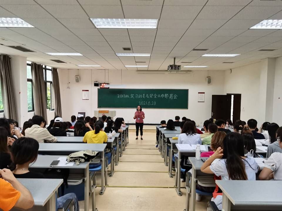 根据教学计划的安排,我院2018级全体本科生即将进行专业实习和毕业实习,为做好实习前的准备工作,特召开本次会议。会议分三个部分:首先,由陆敏和何鹏两位老师安排部署实习具体事宜;其次,彭华副书记强调疫情防控规定以及进行实习期间安全教育;最后,陈玉梅副院长进行实习动员,对2018级全体学生入学以来展现出的良好学习风气和优良品质给予了肯定,希望同学们在实习中秉承学院优良传统,展现良好风范和形象,戒骄戒躁,脚踏实地,认真完成实习单位的每一项工作,理论联系实际,学有所成。