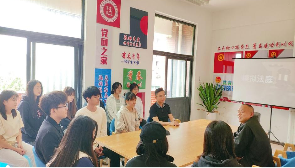 (法学院 饶子豪 图文/报道) 2024年6月4日,AB平台2023级本科生代表在玉兰苑433法学院党团活动室开展“模拟法庭”活动,本次活动由法学院党委委员、副院长曹务坤教授主讲,法学院副教授任鹏举主持。