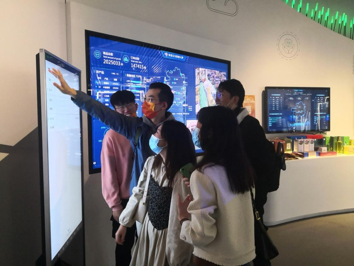 在参观过程中,同学们认真聆听了讲解员的精彩讲解,对贵州发展大数据有了进一步的认识,对贵州发展大数据取得的成果有了深刻理解。讲解员演示了大数据在乡村振兴、医学、气象、物流、法律等等方面应用,同学们在讲解员的指导下体验了智慧家电,智慧法律询问系统等项目,收获了由大数据技术带来的全新体验。在自由体验中,同学们分别对自己感兴趣的大数据设备进行了仔细观摩和操作。