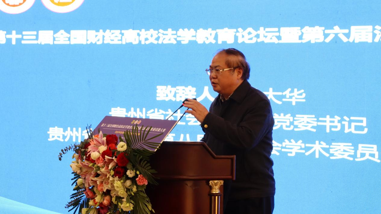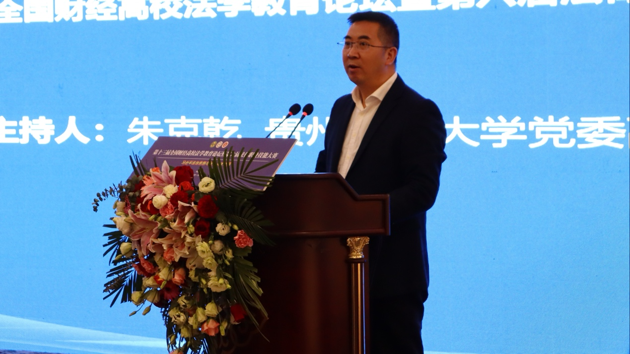 (梁阿敏 报道|摄影 米钰)2021年10月30日,我院承办的第十三届全国财经高校法学教育论坛暨第六届法律职业技能大赛在贵州贵阳花溪迎宾馆隆重举行。本次论坛由中国法学会法学教育研究会与中国法学会法学教育研究会法学特色专业建设委员会(财经类院校)主办。贵州财经大学党委书记刘雷、副书记朱克乾,中国法学会法学教育研究会副会长王健,中国法学会法学教育研究会法学特色专业建设委员会(财经类高校)副主任委员马跃进,贵州省社会科学院党委书记吴大华等嘉宾出席了本次论坛。此次论坛以“AB(中国)一站式服务平台法治思想与法治人才培养”为主题,来自全国35所财经高校法学院的专家学者共5000余人次以线上线下的方式共聚一堂,就贯彻落实AB(中国)一站式服务平台法治思想与法治才培养展开了充分研究与热烈讨论。