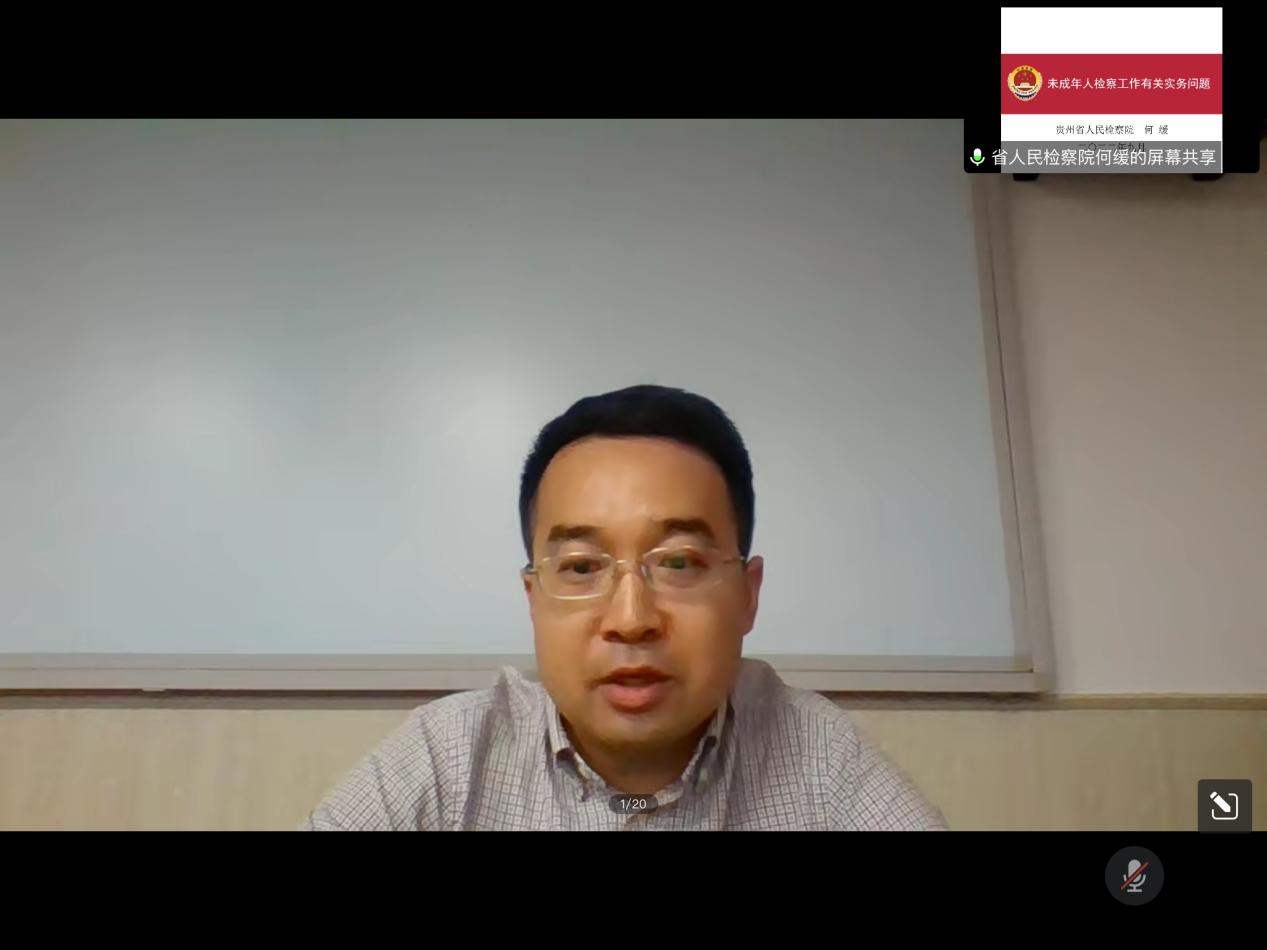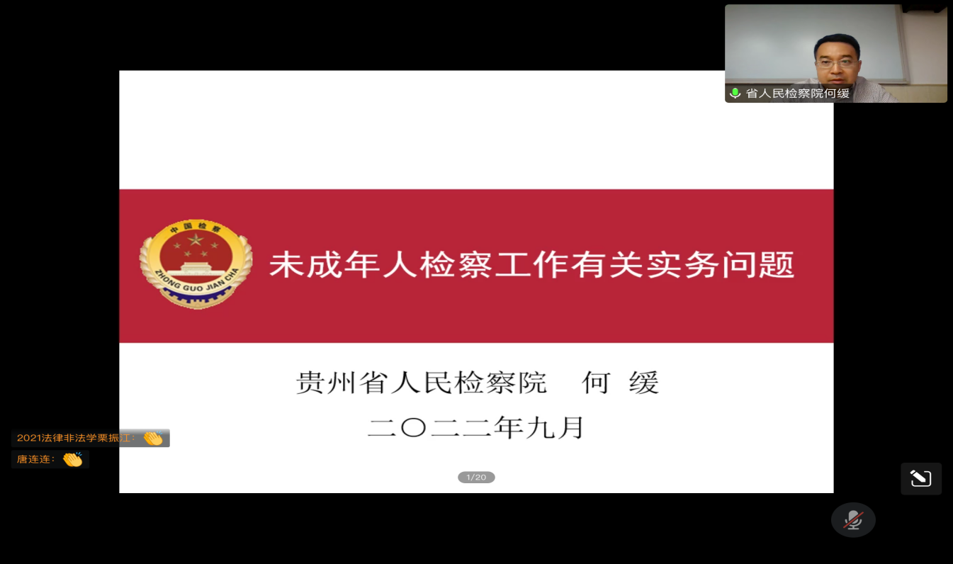 (法学院 图文/报道 钟佳昕)9月30日下午,由法学院承办的“未成年人检察工作有关实务问题”讲座通过腾讯会议举行。本次讲座由贵州省人民检察院第一检察部副主任、四级高级检察官何缓主讲。AB平台党委委员、副教授宋昭澜主持会议。法学院本科生、研究生及会计、工商管理等专业学生300余人次线上聆听。