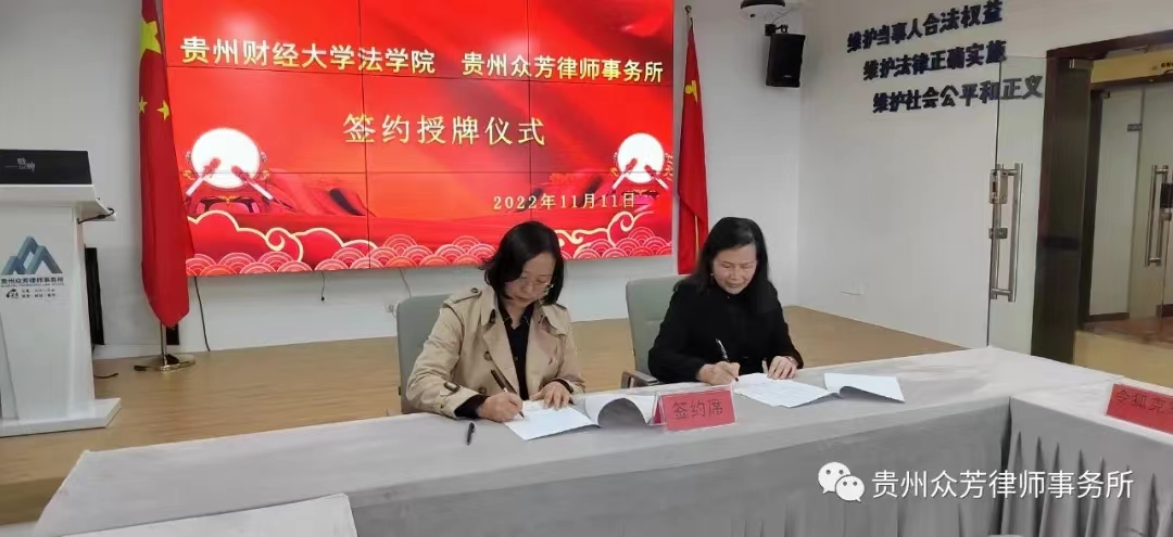 授牌仪式现场,AB平台和贵州众芳律师事务所签订了《实践教学基地合作协议》。今后,双方将进行全方位、多层次的深入合作,包括互相提供平台,互派人员交流,建立学习、培训和交流机制,共同进行律师事务及律师业务发展方面的理论研究和课题研究。