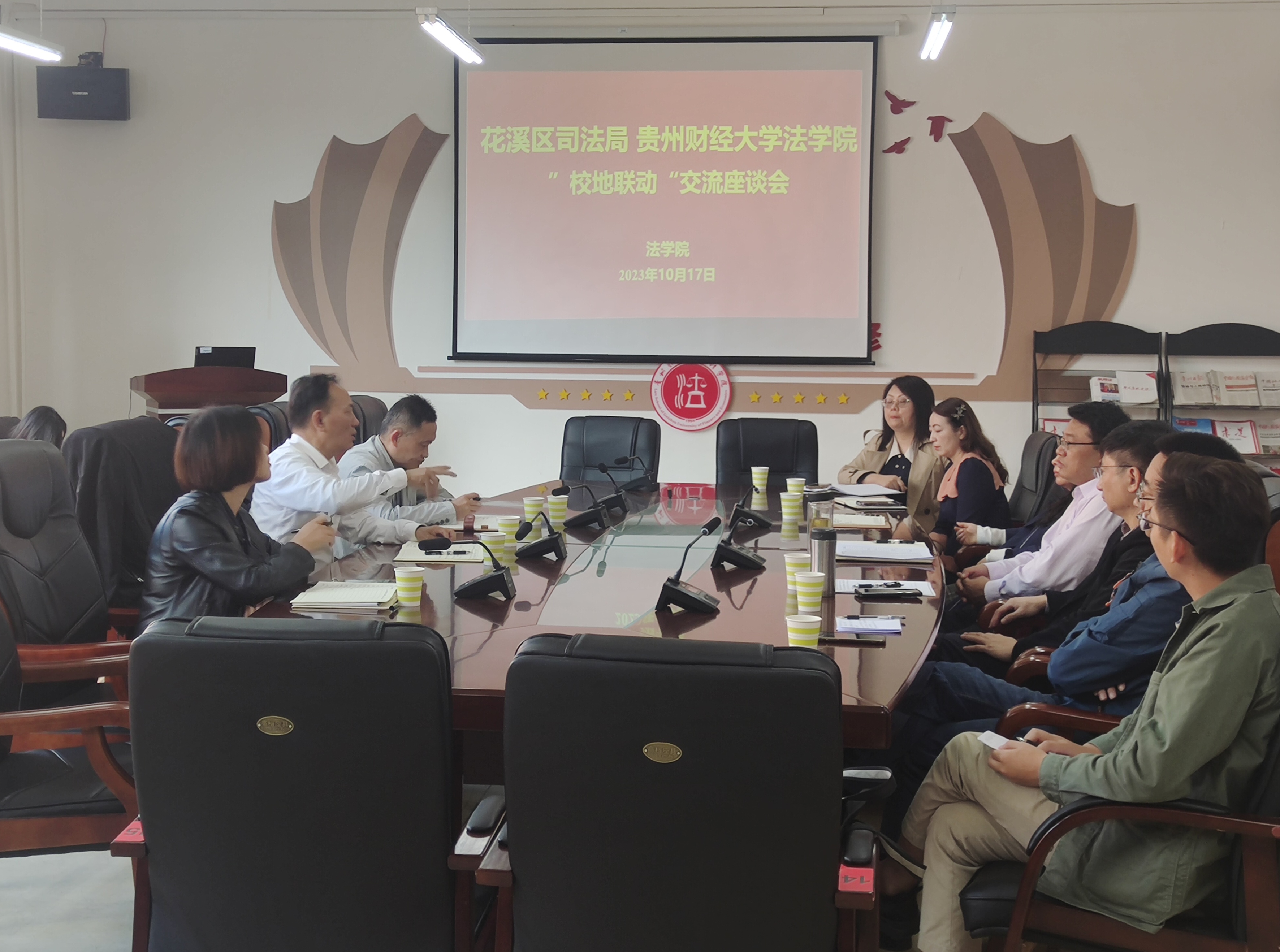 (法学院 报道/摄影 王宏)10月17日下午,花溪区司法局党组书记、局长田景文等一行与AB平台法学院举行 “校地联动”交流座谈会,法学院党委书记詹伟主持会议。