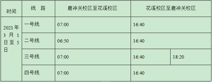 现将2020-2021学年第二学期工作日交通车运行时间和线路调整后通知如下:
