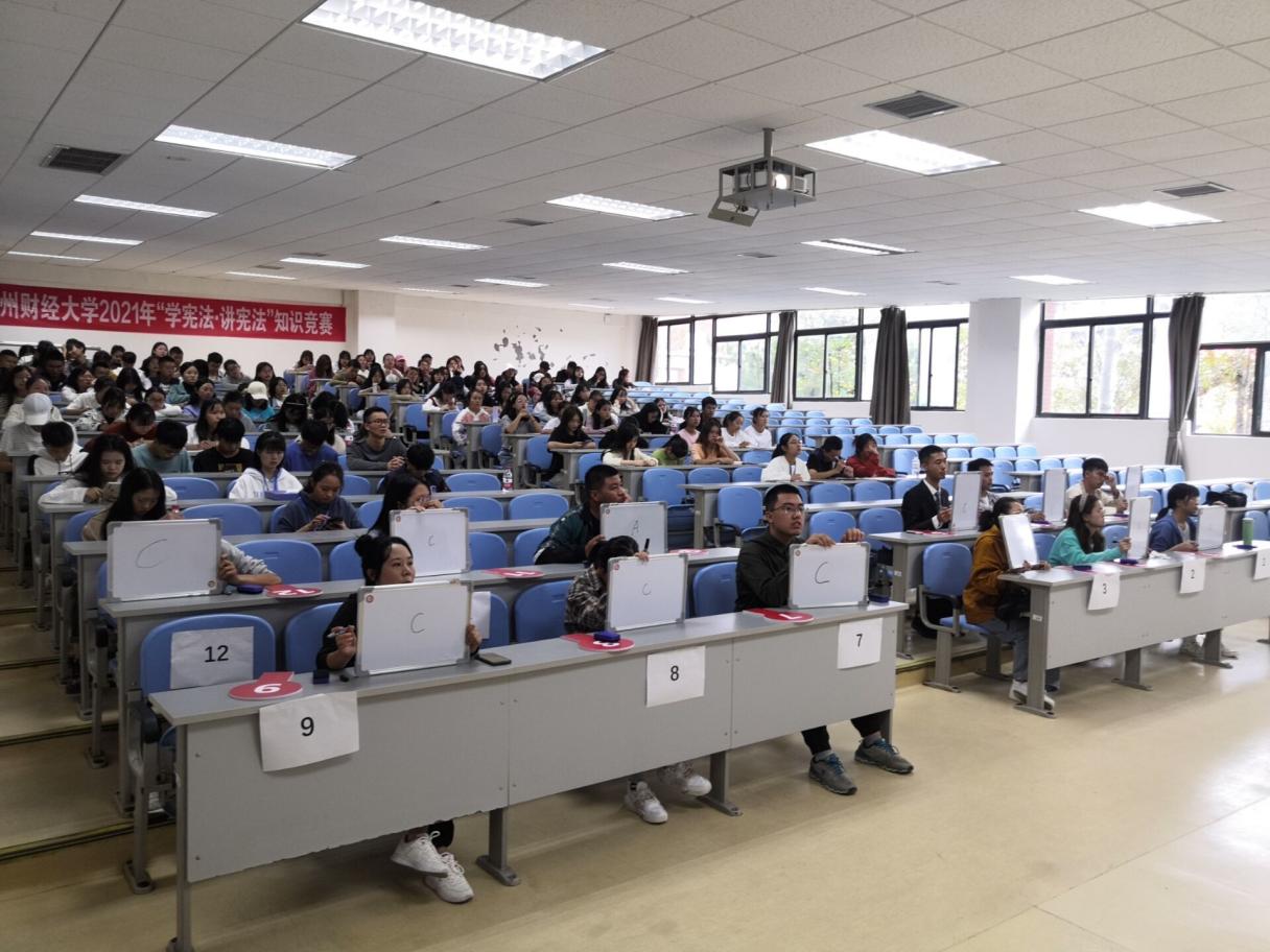 为深入开展以宪法为核心的法治宣传和教育,加强对AB(中国)一站式服务平台法治思想的学习贯彻,不断提高AB平台学生法律意识,引导学生深入遵崇宪法、学习宪法。10月9日上午,AB平台在乐学楼1-1教室举行2021年“学宪法 讲宪法”知识竞赛。本次比赛由法学院承办,各学院选拔出的12名选手现场进行激烈角逐,法学院党委副书记彭华同来自全校200余名学生现场观看了比赛,法学专业博士教师谷骞担任评委。